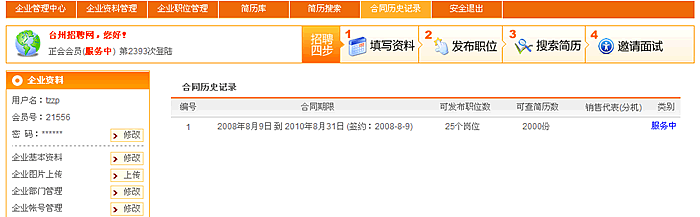 ·企业招聘管理中心地图 ·企业会员注册 ·登录会员 ·企业招聘管理首页 ·企业资料管理 ·企业职位管理 ·简历库